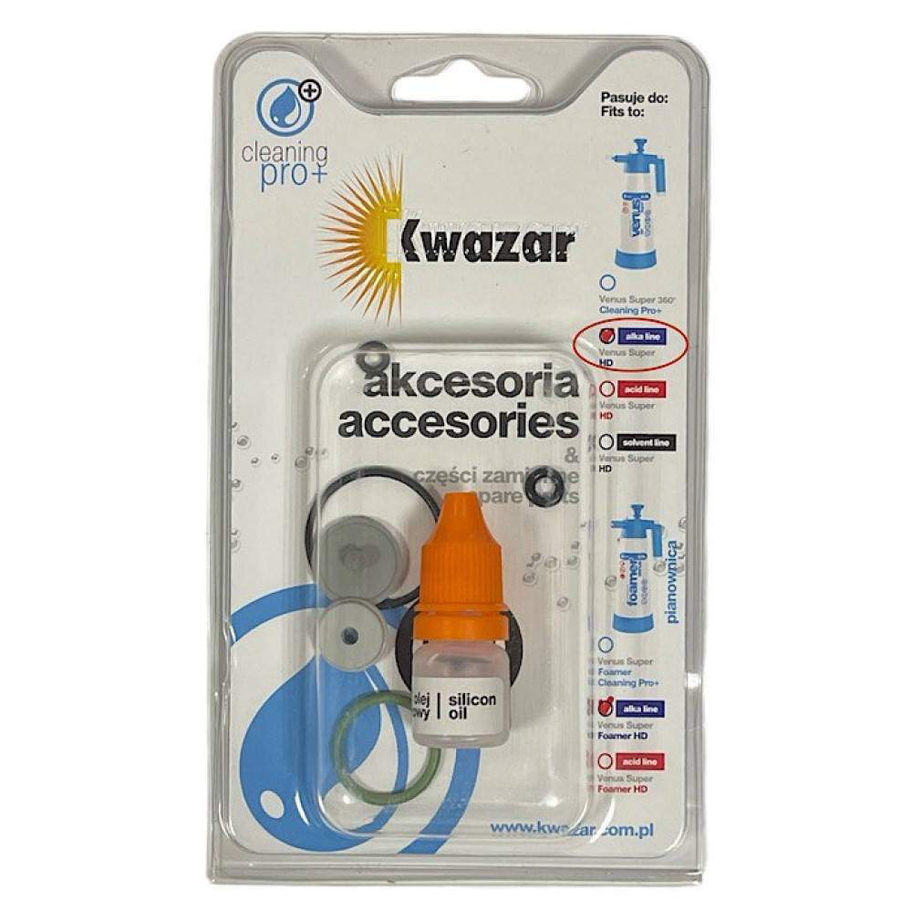 Комплект містить найважливіші ущільнення, необхідні для правильної роботи обприскувача, а також силіконове мастило для технічного обслуговування і змащування поверхонь ущільнень. Призначений для сервісних центрів і індивідуальних користувачів.